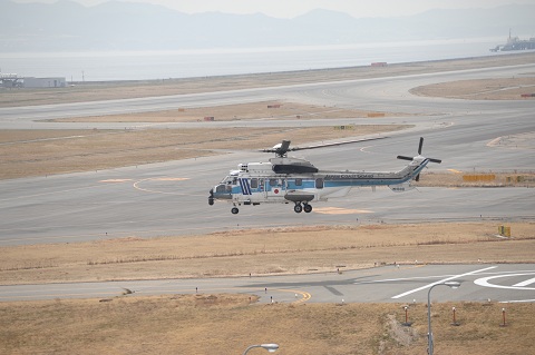 隣の海上保安庁の敷地に、ヘリコプターが着地。