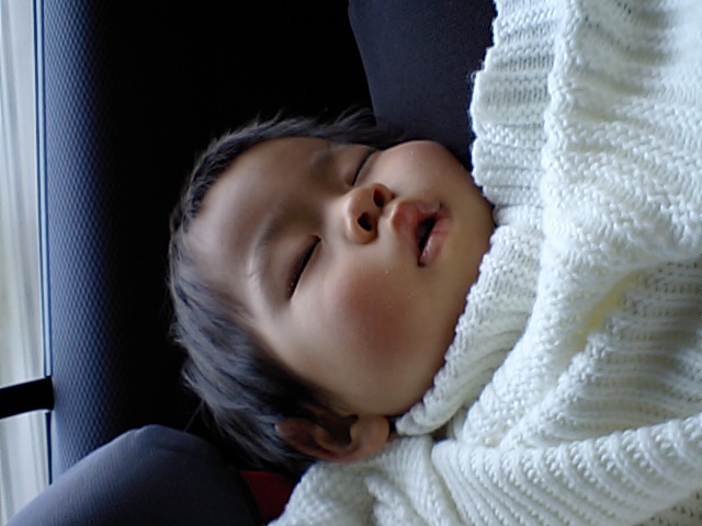 帰りの車では、ぐっすり・・・(ΘωΘ)o.。o○グー