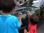 本物の車に、マーカーで好きな絵を描きます。