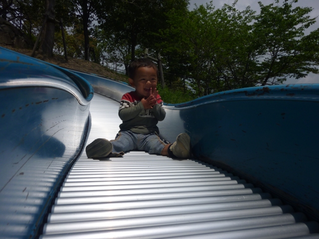 ここの滑り台は、よく滑ります。