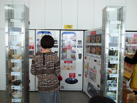 自販機でカップ麺を選び、自分で作って食べるスペース。