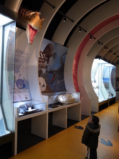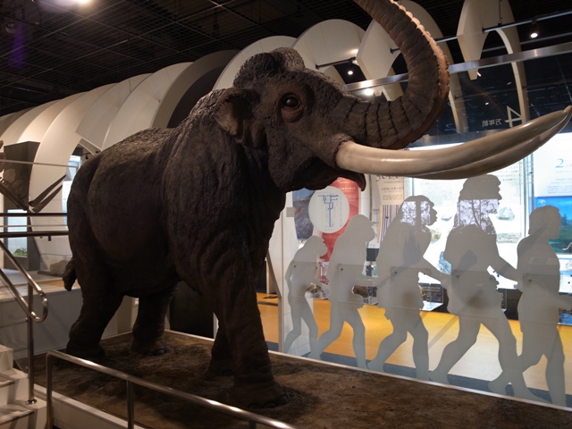 タイムトンネルを通ると、恐竜やマンモスがいます。