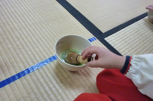 一人一人の前に茶碗と茶筅が置かれ、自分で点てて頂きます。