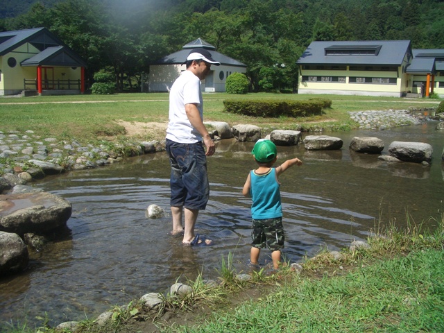 さっそく川遊び。