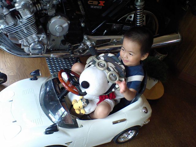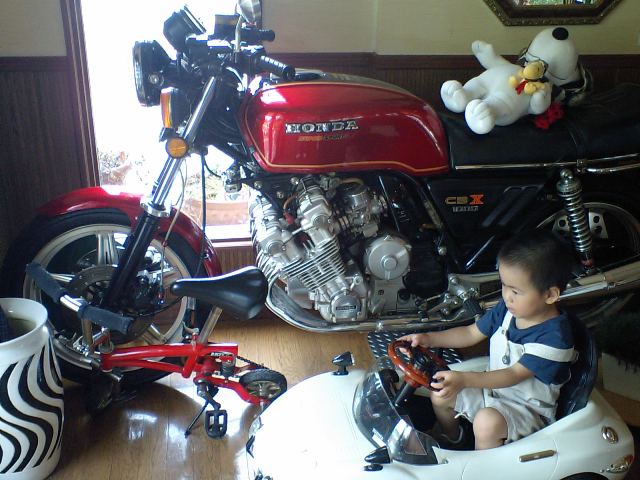 おもちゃの横には、HONDAのバイクが。