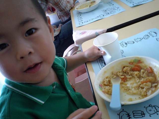 在園児によるお遊戯を見て、一緒に踊って、カレーライスを