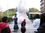 消火器の使い方を教えてもらったあとは、火事の際の煙体験。