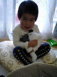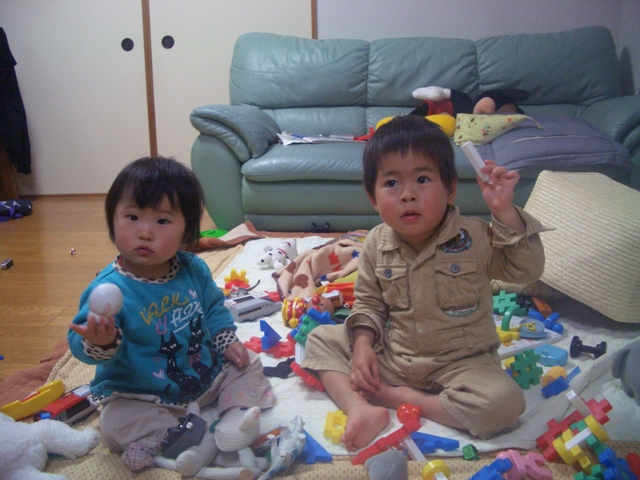 ちゃんとおもちゃを渡して、お兄ちゃん気どり。