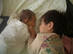 初めは泣きましたが、すぐにスヤスヤ・・・