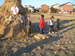 地区の行事『とんど』が8時から行われると知り、ギャングも