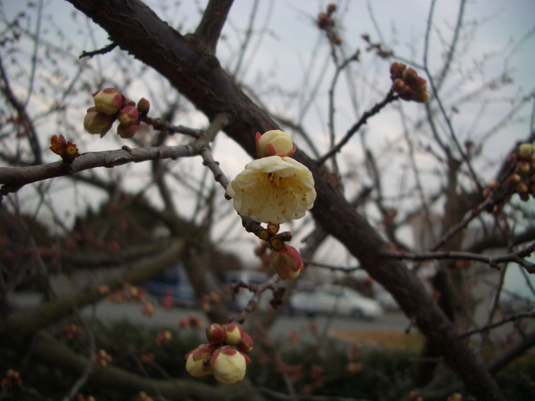 梅の蕾も膨らんで、1つ2つ花が咲いています。