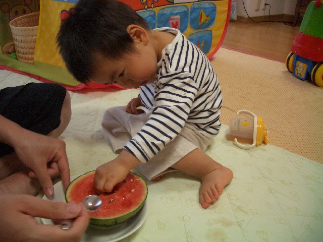 昨夜、スイカを食べました。